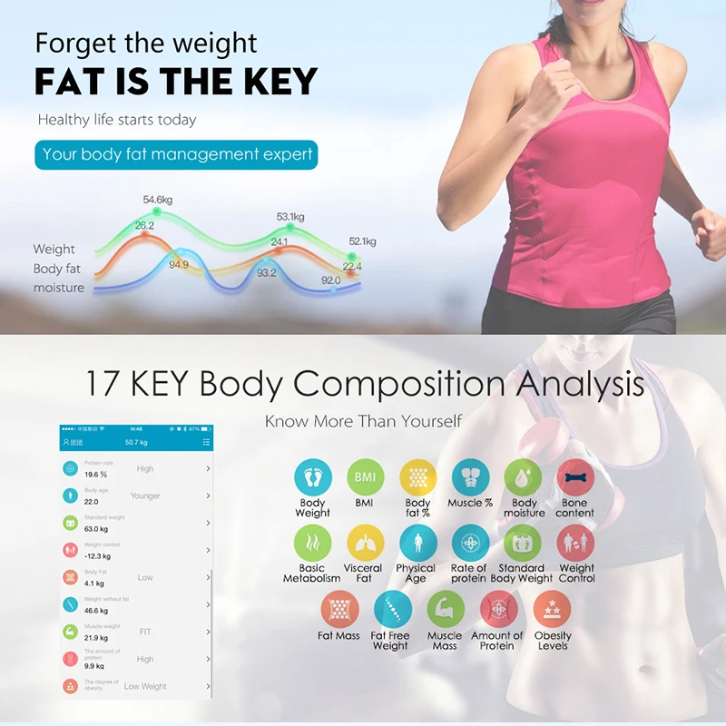 Bluetooth Body Fat Scale Smart Accurate Wireless Digital Bathroom Weight Scale Body Composition Ana