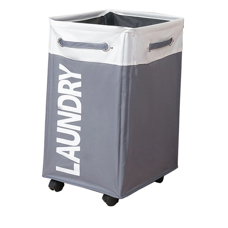 Dirty Clothes Laundry Basket Foldable Storage Basket with Wheel for Office Waterproof Oxford Bathro