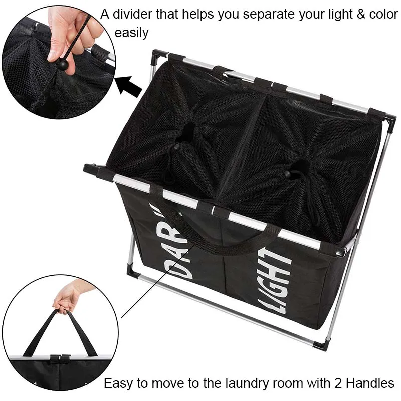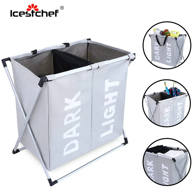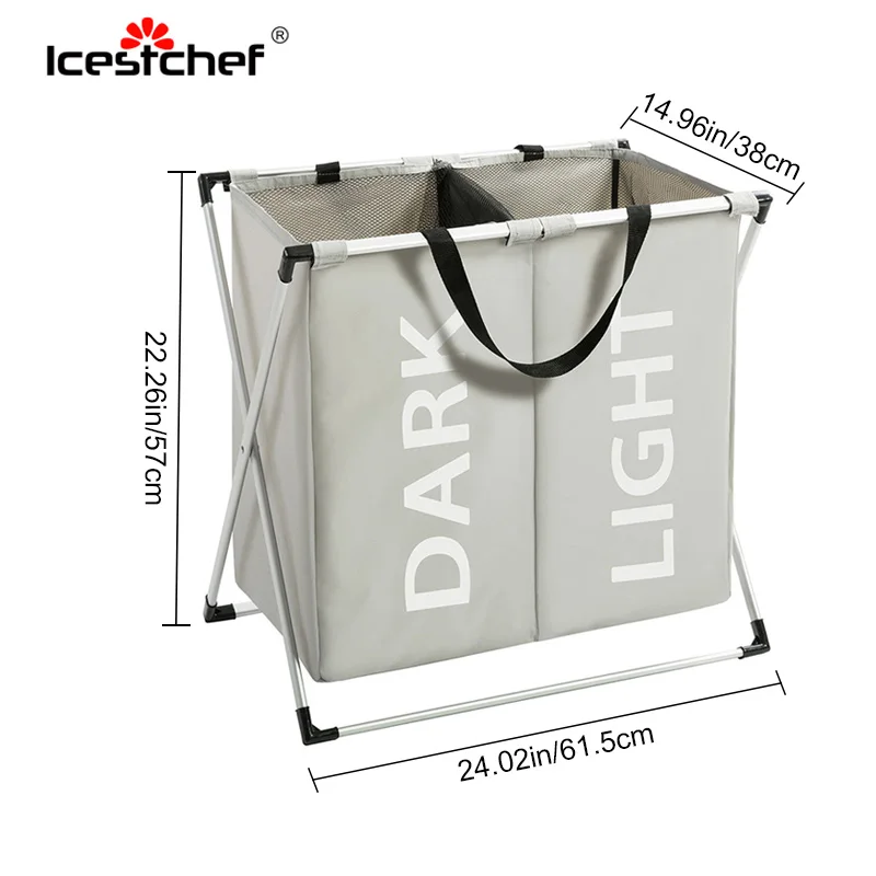 ICESTCHEF 2 Grid Bathroom Laundry Basket Large Laundry Hamper Organizer Collapsible Dirty Clothes B