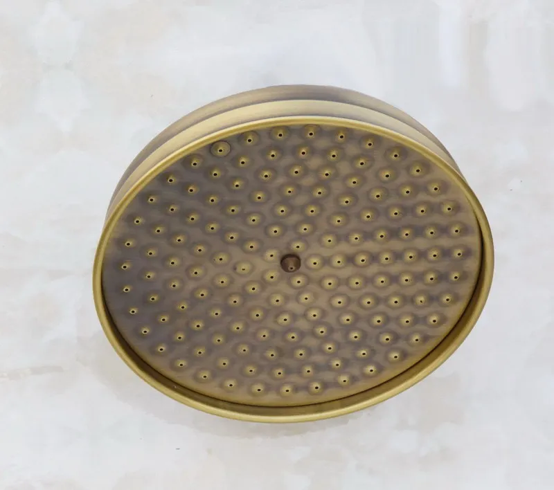 Vintage Retro Antique Brass Wall Mounted Bathroom 8" Round Rain Shower Head Faucet Set Dual Ceramic