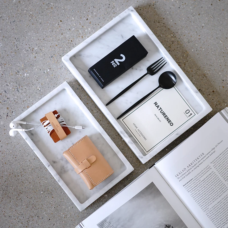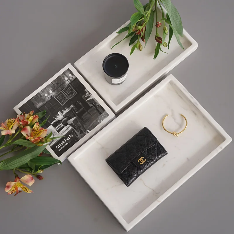 Free ship Simple Natural Marble Tray Cosmetics Jewelry Storage Tray Bathroom Desktop Storage Box Tr