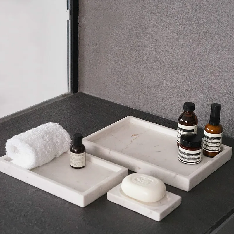 Review Free ship Simple Natural Marble Tray Cosmetics Jewelry Storage Tray Bathroom Desktop Storage Box Tr
