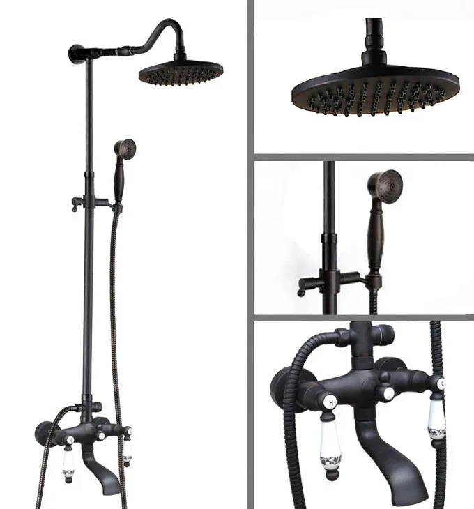 BEST QUALITY Oil Rubbed Bronze Wall Mounted 8" Rain Shower Faucet Mixer Set with Bathroom Shower Faucet Hand Sho