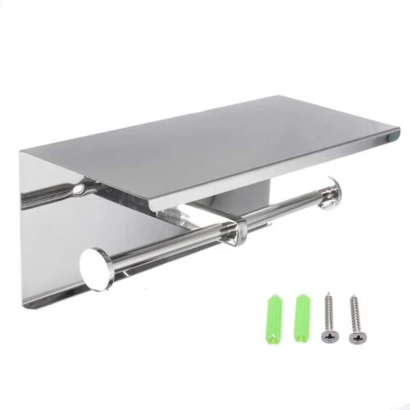 Wall Mount Double Toilet Paper Holder Shelf Bathroom Tissue Stainless Two 2 Roll Luxury Space Alumi