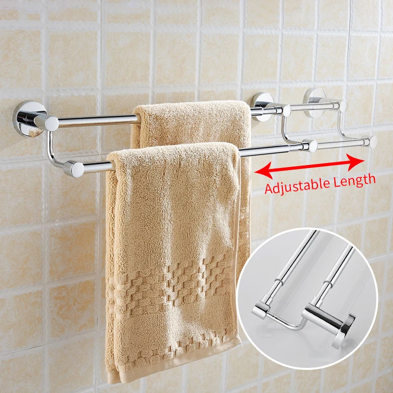 Towel Rack Hanging Holder Stainless Steel Double Towel Bar Wall Mounted Telescopic Bathroom Towel H