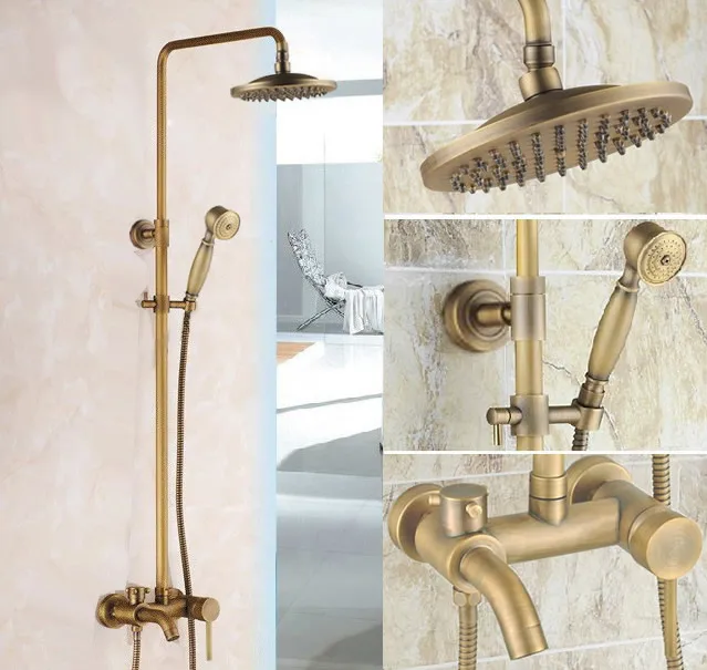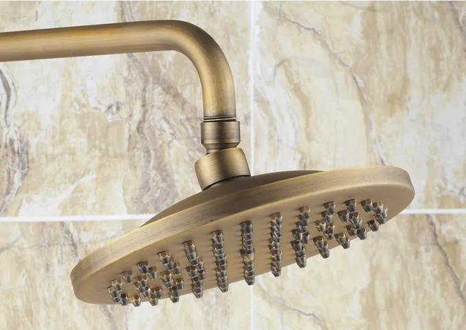 Vintage Retro Antique Brass Single Handle Bathroom 8 Inch Round Rain Shower Faucet Set Bath Tub Mix