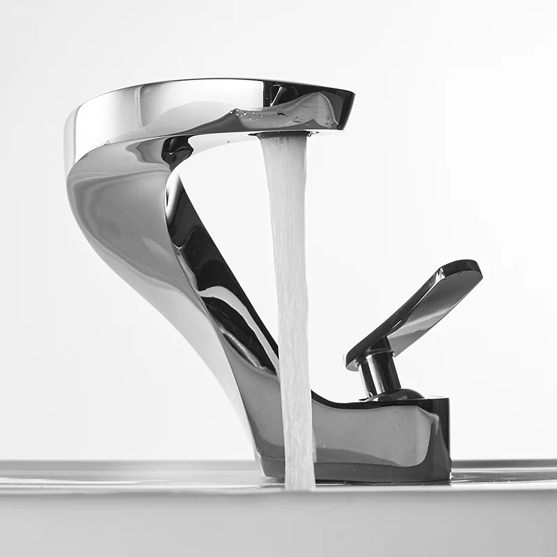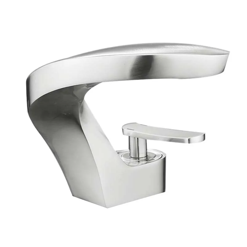 Basin Faucet Cold and Hot Waterfall Contemporary Chrome Brass Bathroom Basin Sink Mixer Deck Mounte