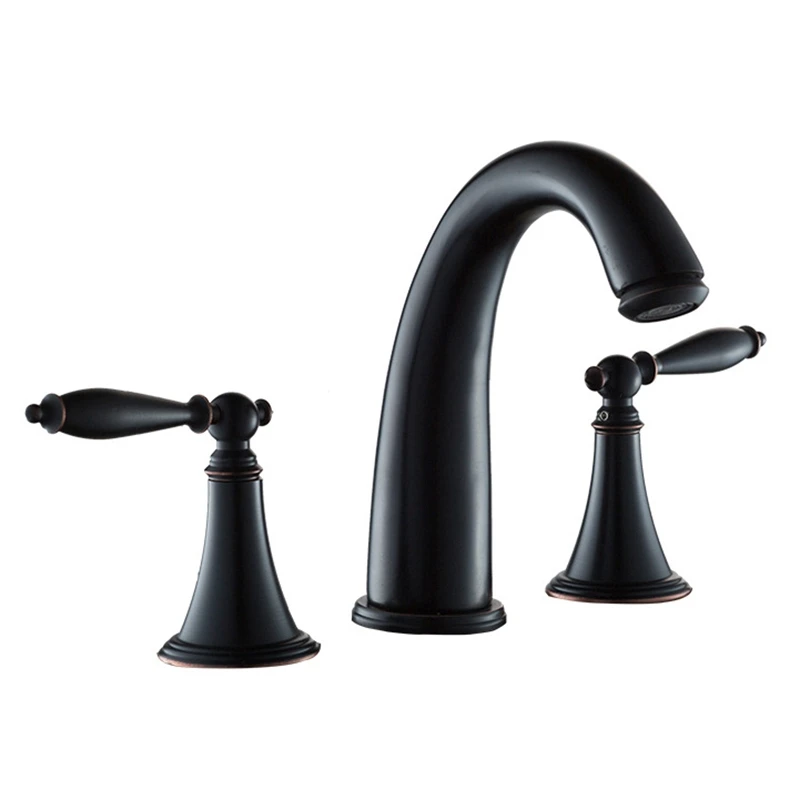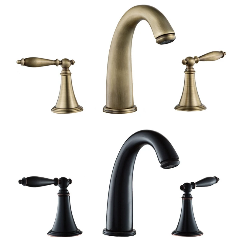 3 Hole Brass Handle Bathroom Sink Faucet Hot Cold Tap