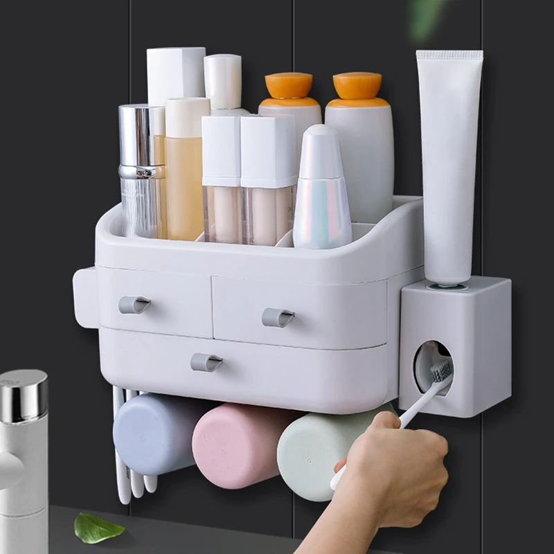 Fashion-Toothbrush Holder Bathroom Shelf Free Punching Wall Hanging Suction Cup Type Environmentall