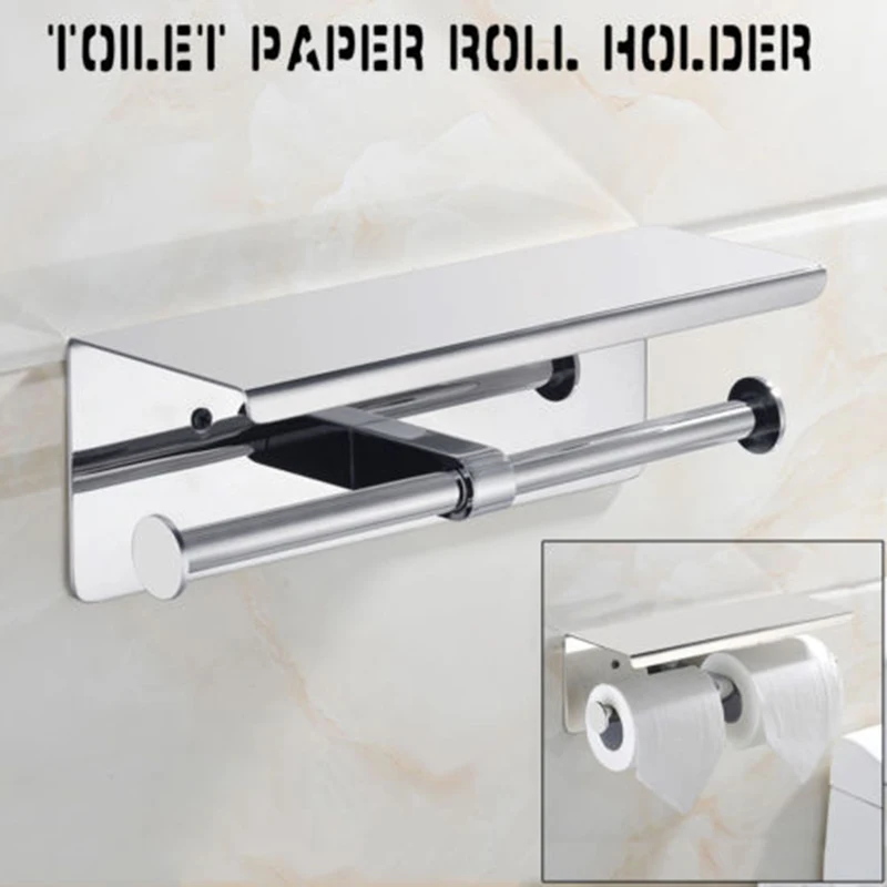 Wall Mount Double Toilet Paper Holder Shelf Bathroom Tissue Stainless Two 2 Roll Brushed Towel Shel